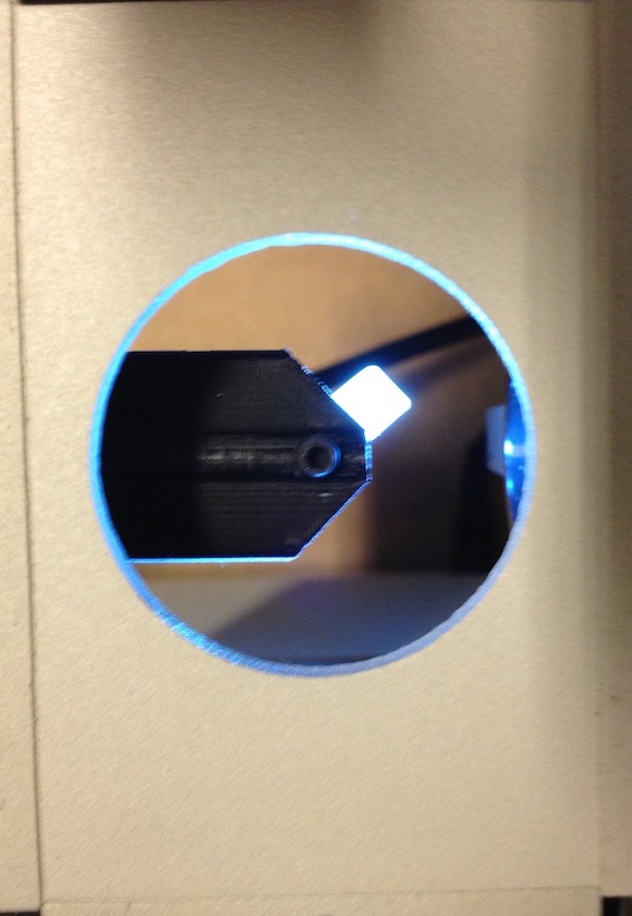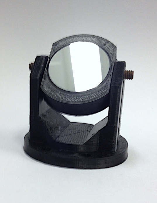 We 3D printed a misplaced mirror mount for directing light from the rear microscope ports. The part fits our Nikon Eclipse TE2000-U inverted microscope and can be adjusted to align the light. The part was printed in ABS plastic to prevent warping due to heat.